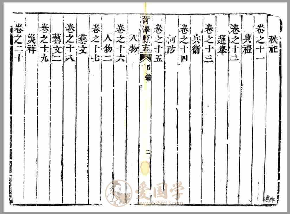 内容:记载本地历史、地理、人文、社会、方舆等全面情况。