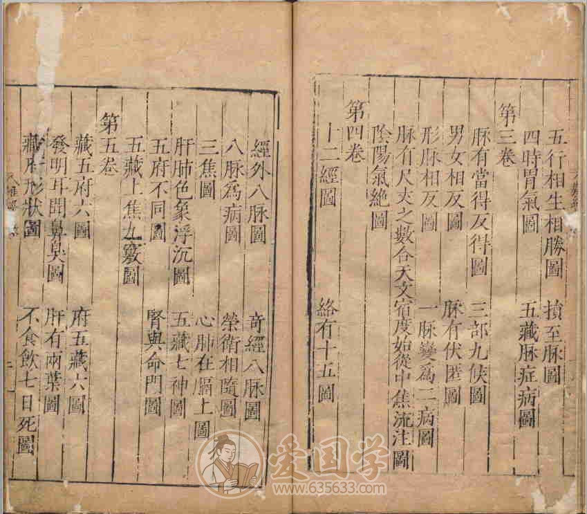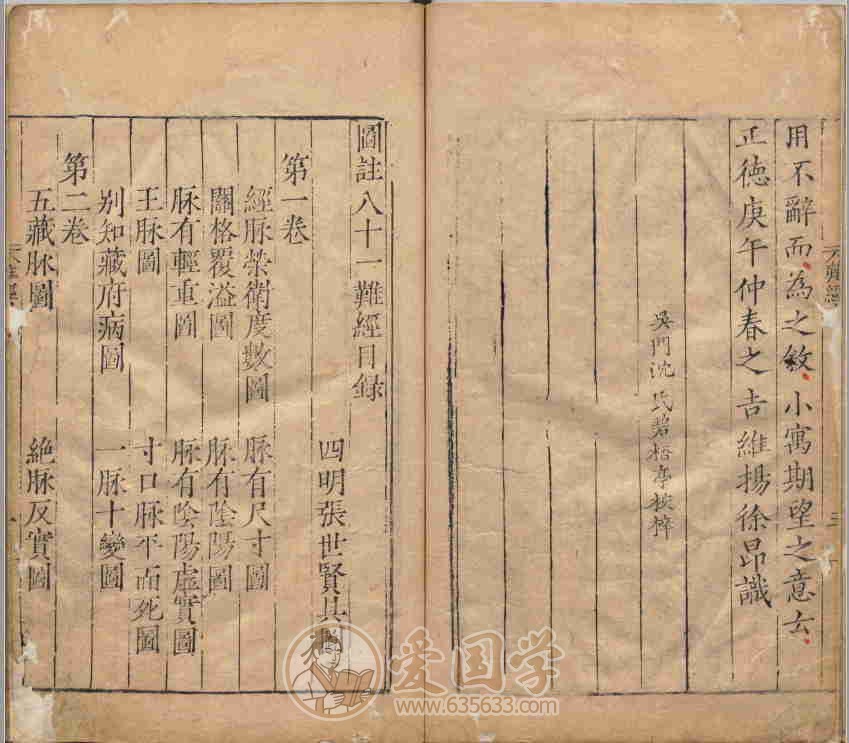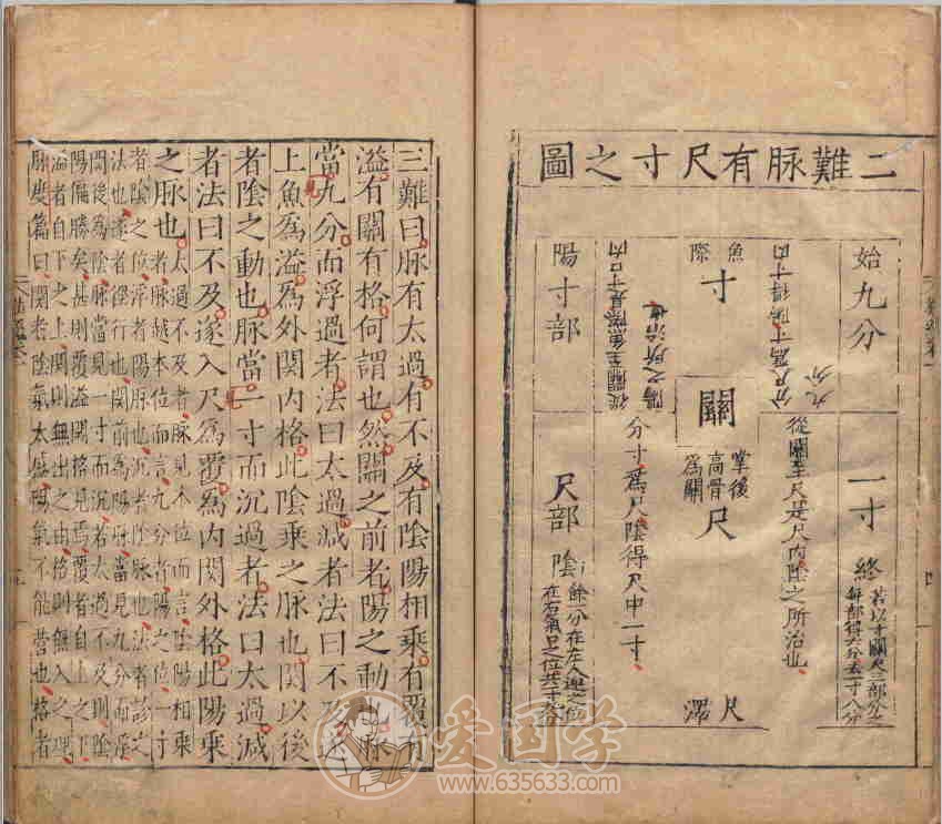 内容:书中包含经脉荣卫度数图、脉有尺寸图、关阁覆溢图、脉有阴阳图等众多图表,通过形象的图示对《难经》中的理论进行阐释,注文也较为通俗,便于读者理解《难经》的深奥内容。