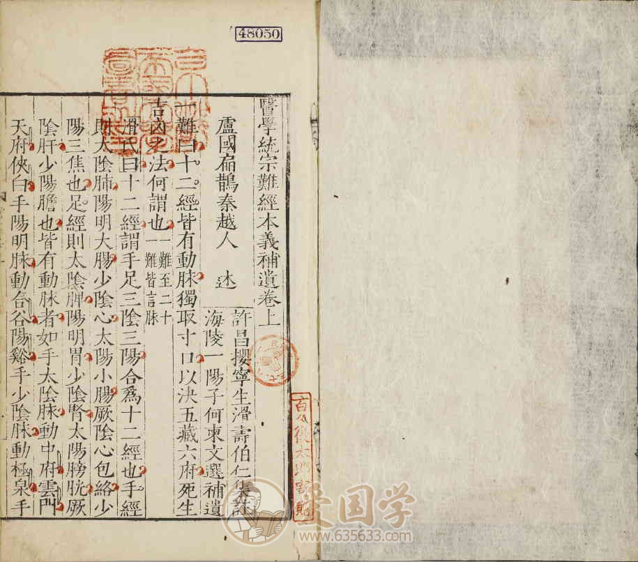 内容:《医学统宗》是明代医家何柬编撰的综合性医学丛书,成书于明隆庆三年(1569 年),全书 8 卷、子书 7 种,以汇编医经解读、诊法针法、医书评述为主,兼具文献整理与医政史料价值,是明代医学传承与医事制度研究的珍稀典籍。