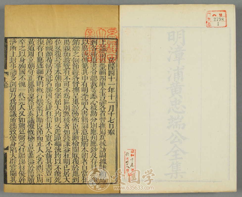 内容:《黄漳浦集》(全称《明漳浦黄忠端公全集》)是明末大儒黄道周的诗文合集,由清人陈寿祺历时十年重编,道光十年(1830)刊行,为研究黄道周与晚明历史、学术、文学的核心文献。