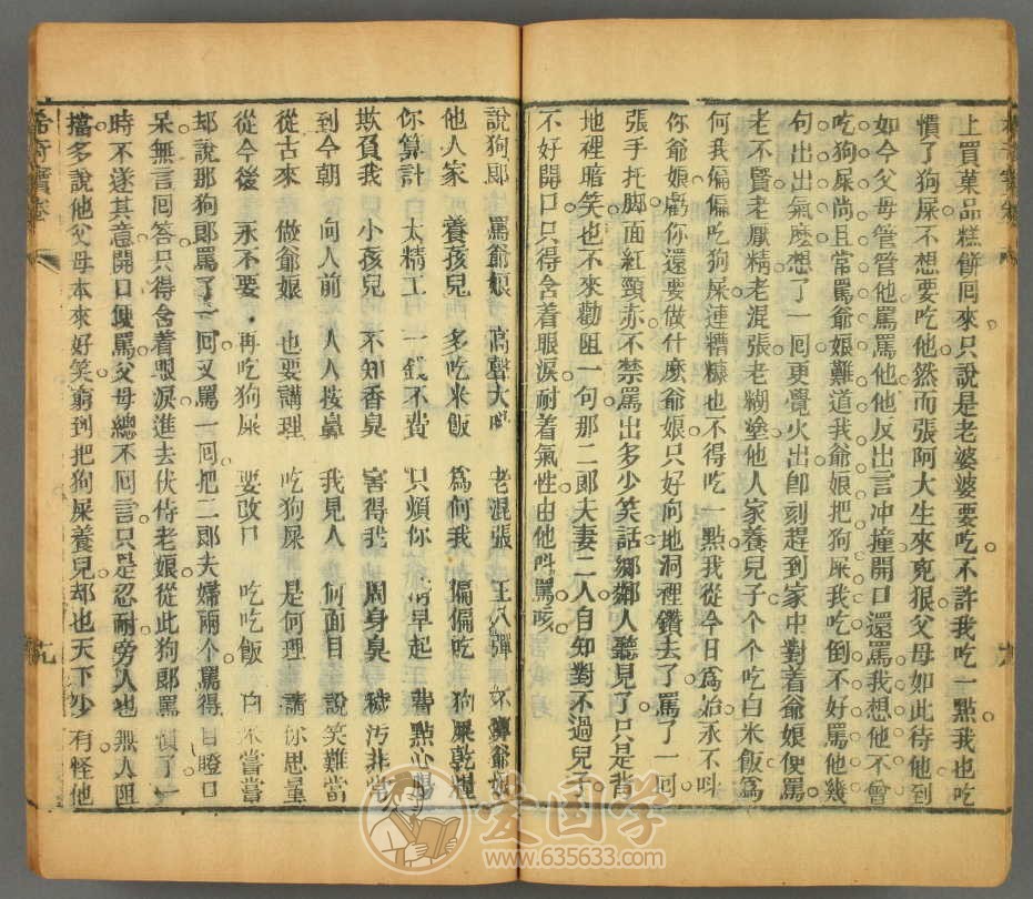 内容:《希奇宝卷》(全名《希奇宝卷(吃狗屎骂爷娘故典)不分卷》)是清代佚名编撰的劝孝类民间宝卷,以 “奇事劝孝” 为核心,借 “吃狗屎” 的极端情节批判不孝、倡导孝道,是民间宣卷常用的通俗教化文本。