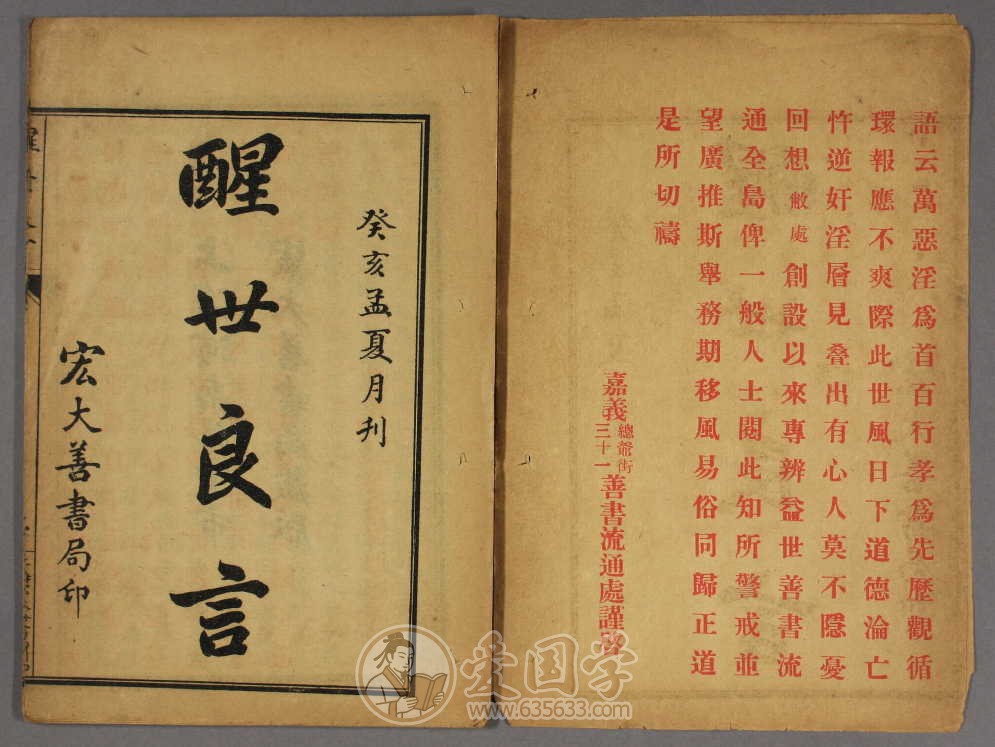 内容:劝人向善、警世修身的格言或文本.末至民国有以 “醒世良言” 为名的通俗劝化书,如民间文人辑录的修身格言集,侧重道德教化与社会劝诫,多为雕版或石印小册,流传于市井。