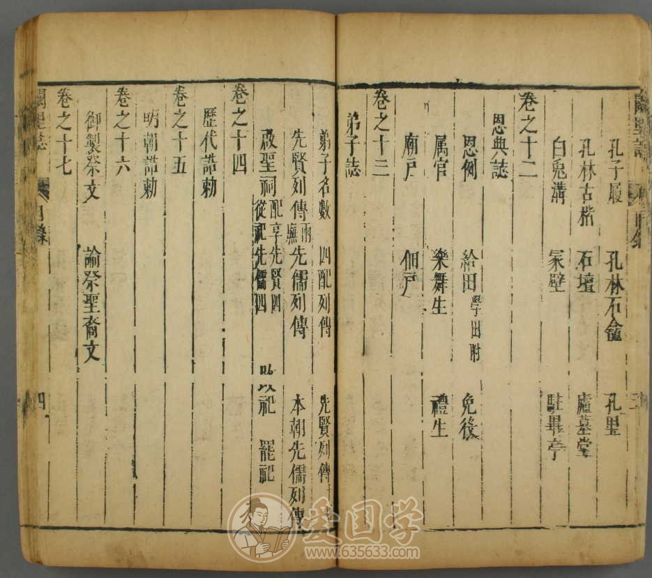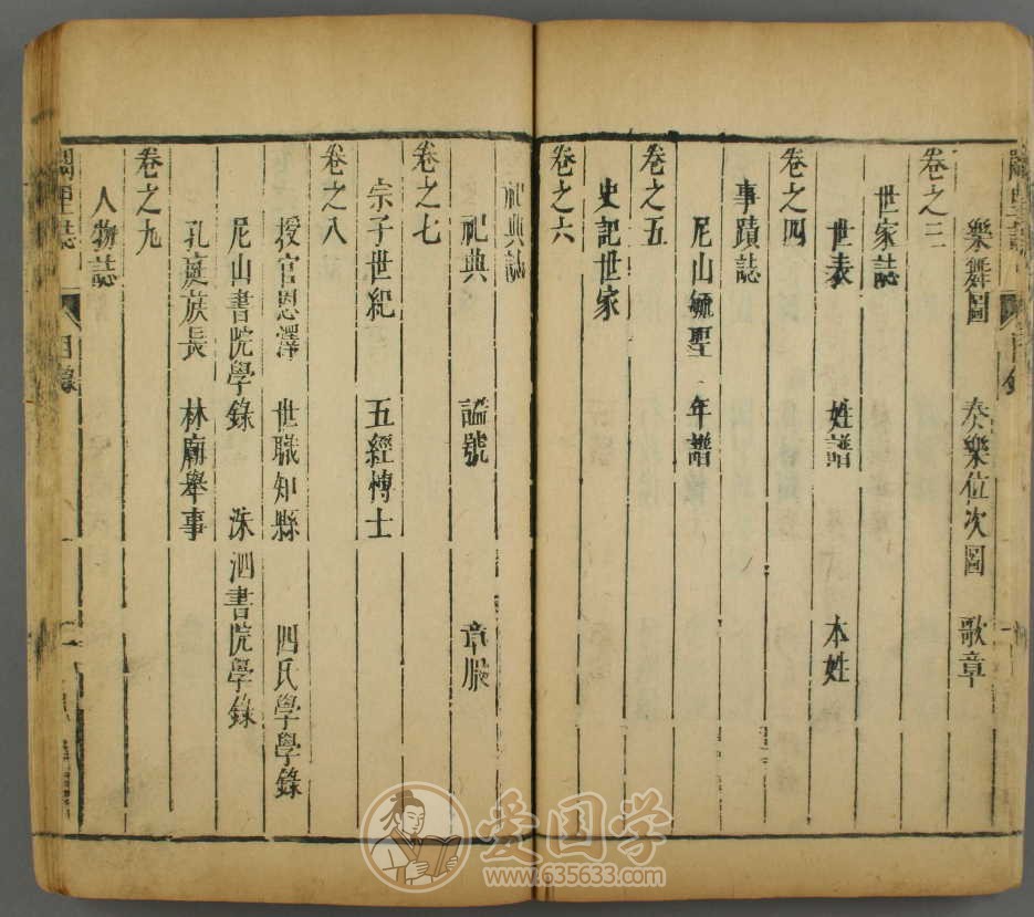 内容:《阙里志》是一部较为完整的孔氏家族史。该书由明陈镐撰,孔允植重纂。全书共二十四卷,以《图像》《礼乐》《世家》《事迹》《祀典》《人物》《林庙》《山川》《古迹》《恩典》《弟子》《撰述》《艺文》等分类排纂。