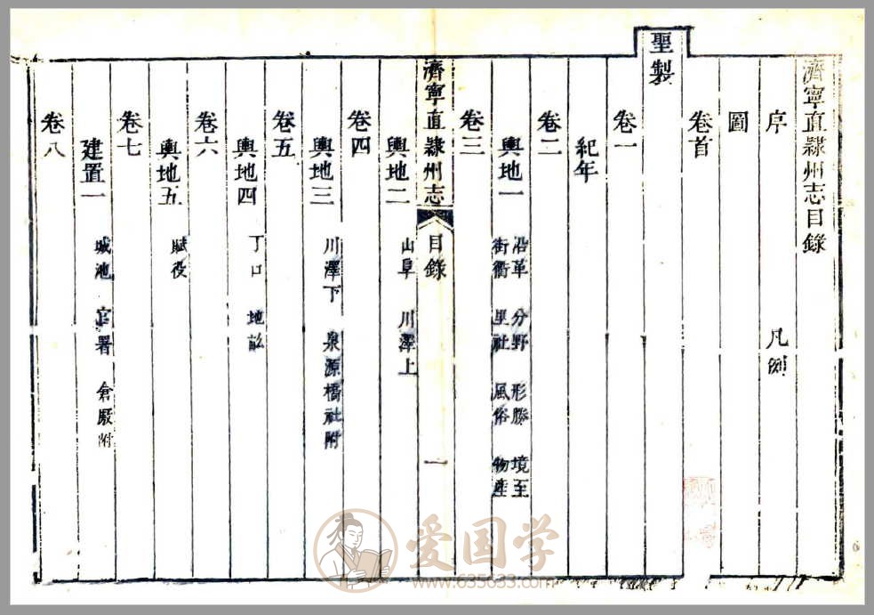 • 背景:继《康熙济宁州志》重修,初修稿未刊,蓝应桂增补订正后付梓,后又经增刻,体例严谨、图文兼备。