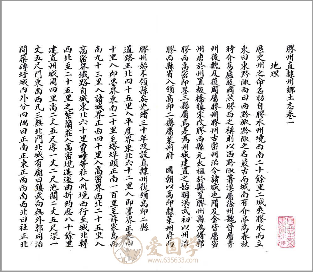 - 背景:光绪末年清廷饬令各府州县编乡土志以兴学堂,胶州直隶州(1904 年升直隶州,辖高密、即墨)因应学制改革编纂,以旧志与采访册为底本,数月成稿。