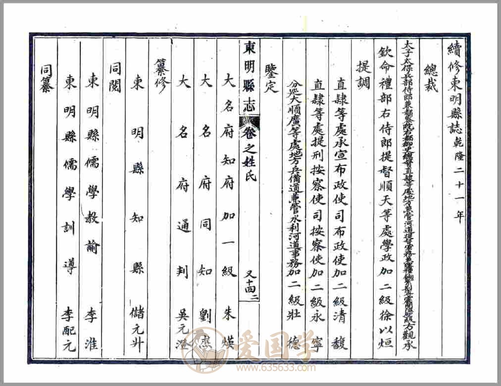 内容:记载本地历史、地理、人文、社会、方舆等全面情况。