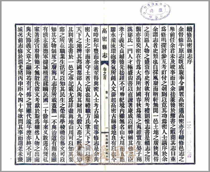 名称:高密县志【民国铅印本】