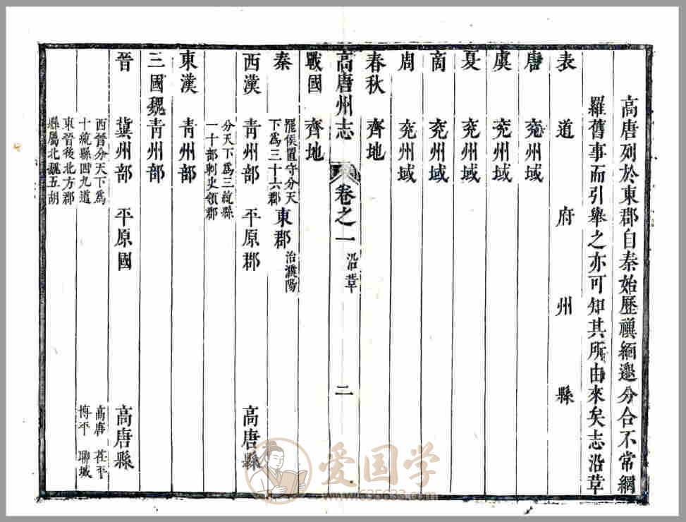 内容:记载本地历史、地理、人文、社会、方舆等全面情况。